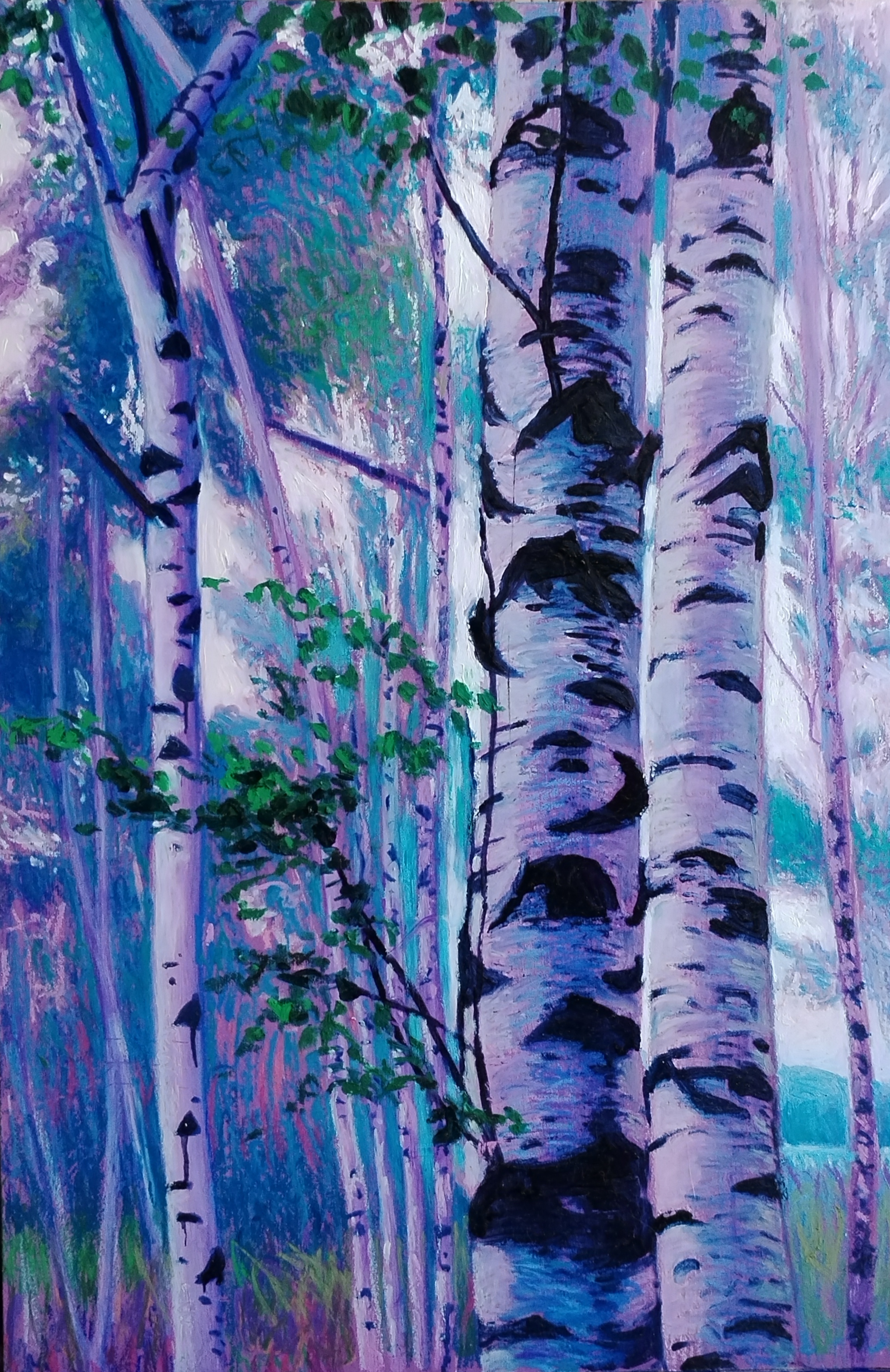 Bouleaux 2 80 x53 Pastel et Huile/bois --2022